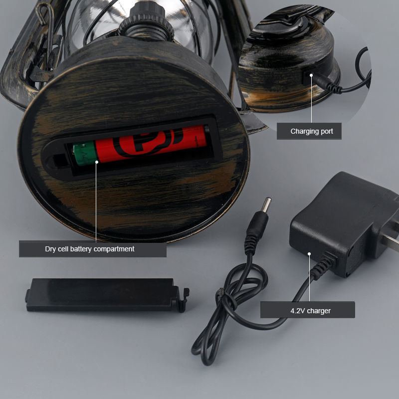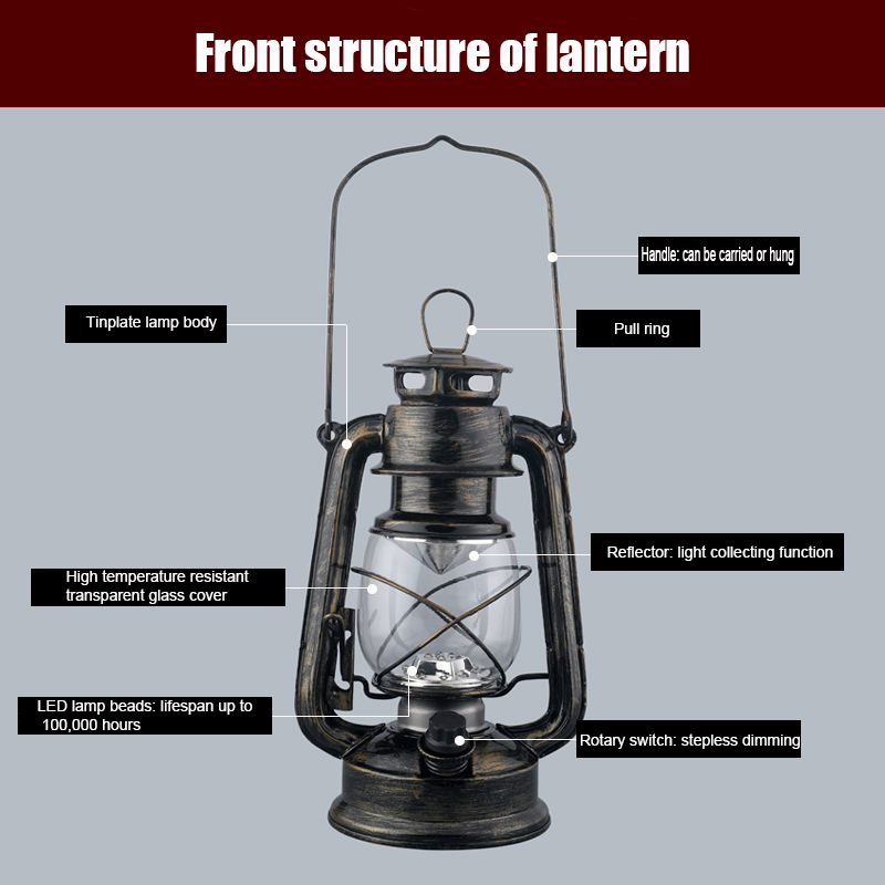 Portable retro lantern dry battery camping lamp LED camping lamp emergency lamp tent lamp iron ornaments dimmable